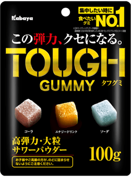 『タフグミ』ブランドは、最大の特長である噛み応えある独自の高弾力食感とサワーパウダーによる刺激性が引き出す“やみつきになる美味しさ”が支持され、累計販売個数は1億個を突破、主力製品の『タフグミ』は2024年度グミ市場販売金額No.1※1になるなど、成長著しいグミ市場において確固たるポジションを築いてきました。