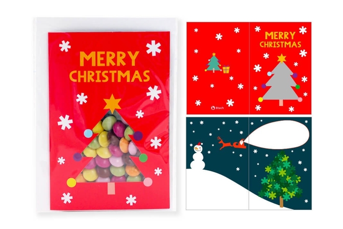 お菓子のプチギフトとメッセージカードが一緒になった新しいスタイルのギフトカード。「Merry Christmas」のメッセージ入りで、クリスマスの心温まる贈り物に最適です。6種類取り揃えております。