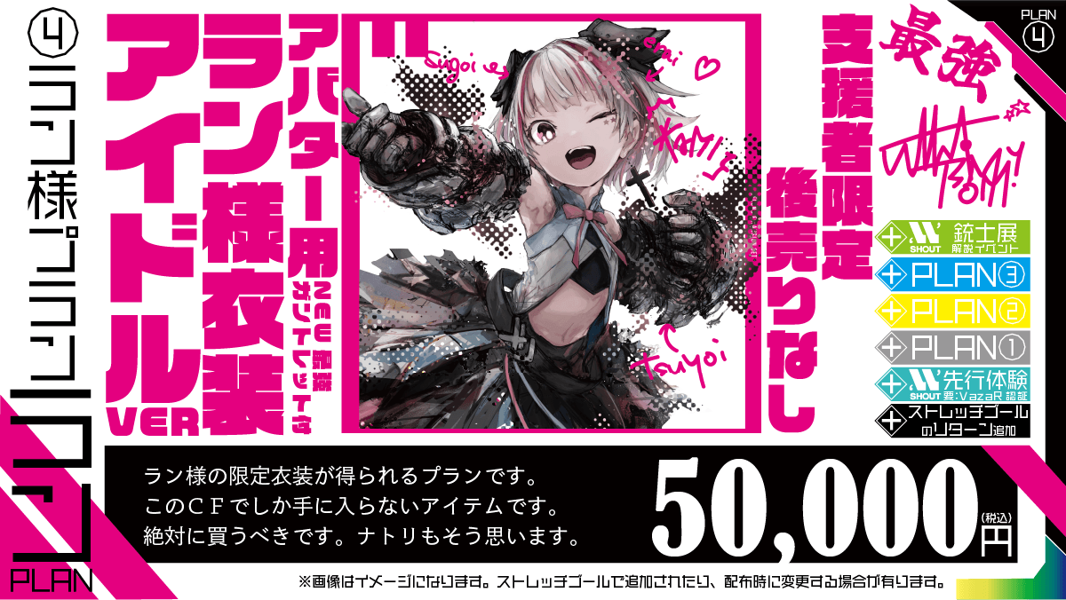 (4)ラン様プラン50,000円:限定衣装「ラン様(アイドルバージョン)」、