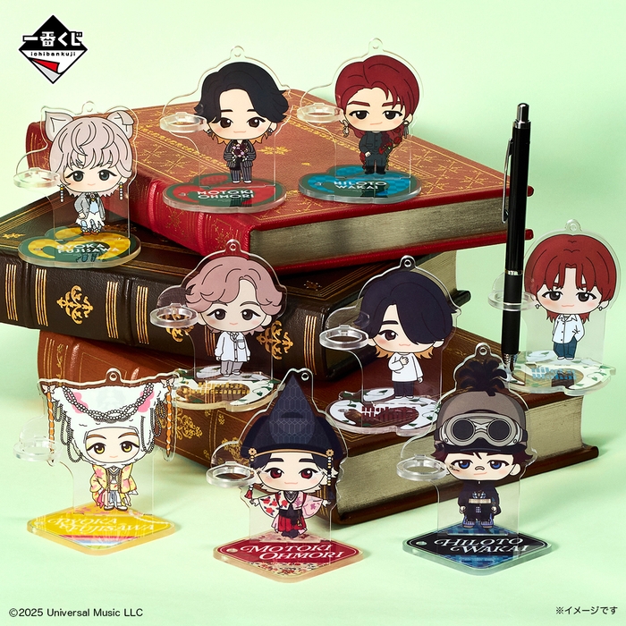 A賞は、デビュー10周年記念のコンセプトフォトをデフォルメしたPUNYBEANSのアクリルライト。B賞は、同じくコンセプトフォトを楽しめるキャンバスボードです。メンバーをデフォルメしたPUNYBEANSのミニフィギュアやアクリルペンスタンドもラインナップ。この他にも、カバンなどのアクセサリーやコースターとしてもお使い頂けるラバーチャーム、ケーブルなどをまとめるのに便利なラバータイや、クリアファイルとステッカーのセットもご用意。いずれもMrs. GREEN APPLEの魅力を存分に楽しめるラインナップです。