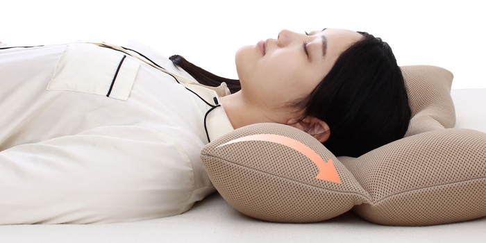 「姿勢美人まくら」で、首周りの筋肉を寝ながら休められます。