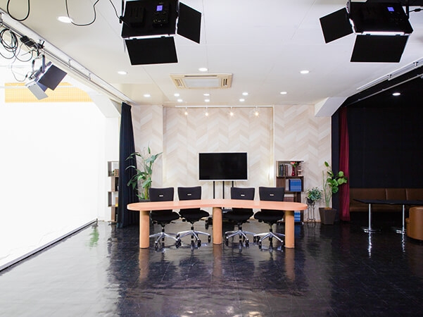 新しく色温度(3300K〜5600K)調整可能な照明を設置したニュースセット は幅広いジャンルでご利用いただけます。