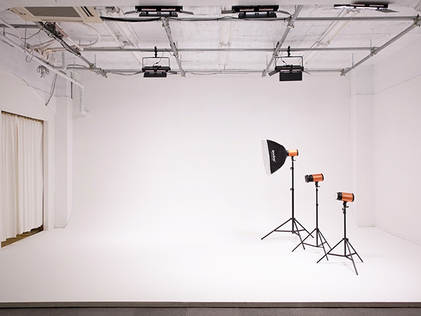 白ホリゾントエリアは、高さ3,400mm、横幅6,400mm、奥行き3,800mmあり、本格的なスチール撮影が可能となっております。