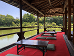 内 容:庭園の景色を眺めながら、お抹茶セットなどをお楽しみいただけます。テラス席をご用意いたします。(テラス席は雨天荒天時中止)