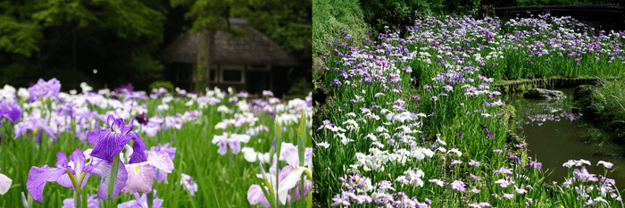 東京のオアシスで、優美なハナショウブに彩られた新緑の美しい田園風景をお楽しみください。