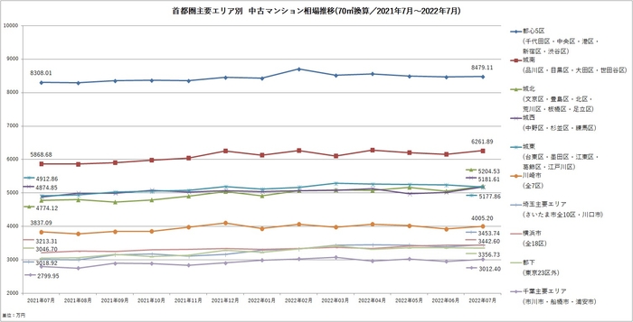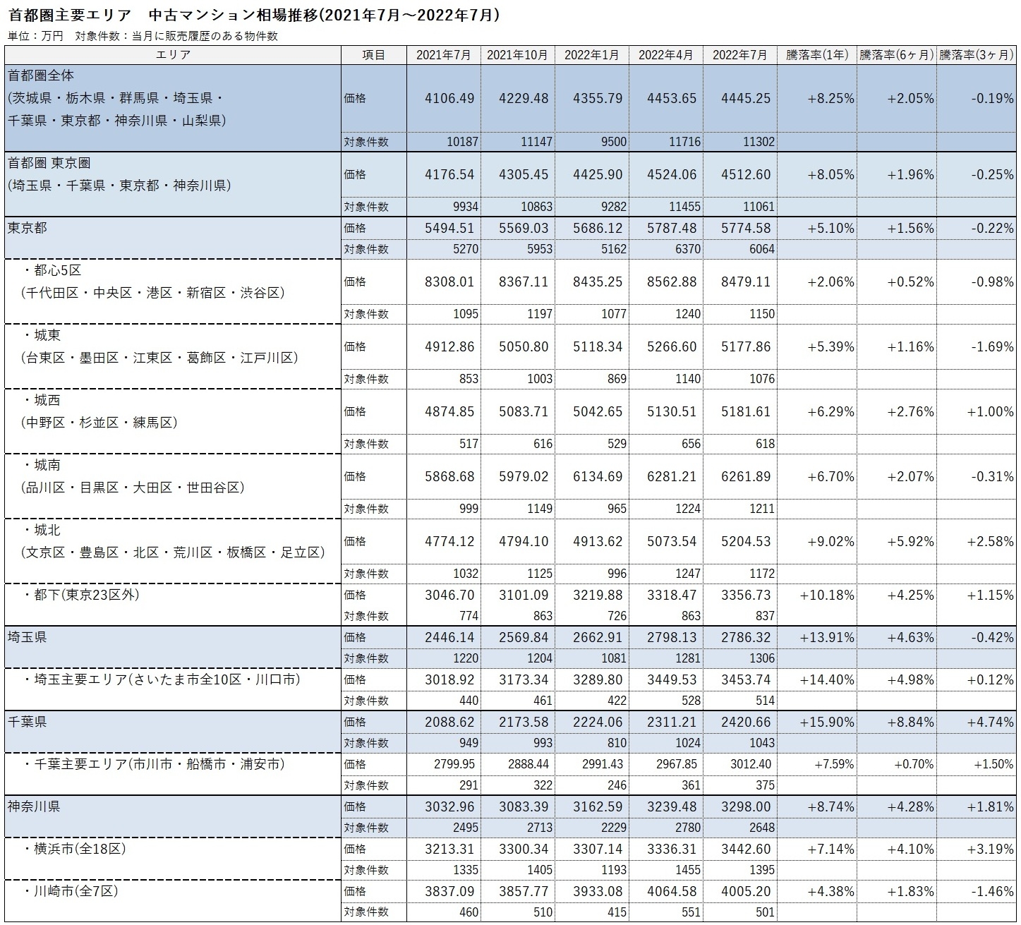「マンションレビュー」2022年7月 全国主要エリア/47都道府県 中古マンション相場推移を発表