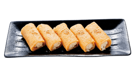 出汁がひたひたにしみたお揚げでくるっと巻いたひと口サイズ。ごはんはふわっと上品な味わい。
