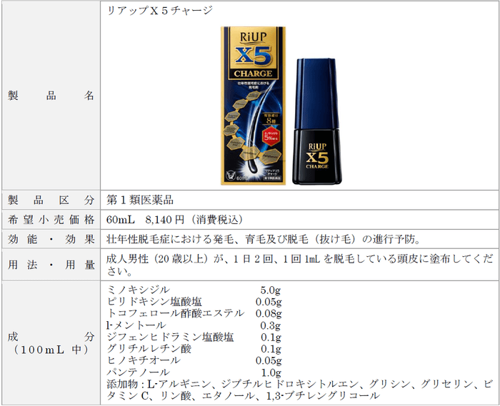 壮年性脱毛症には8種の有効成分を配合した発毛剤 リアップX5チャージ