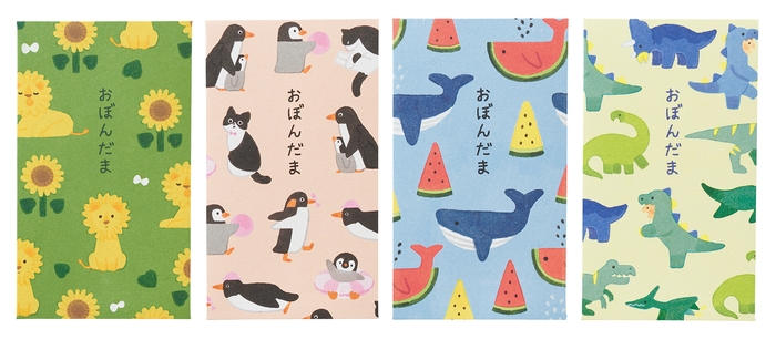 マルアイでは毎年新しいデザインのお盆玉袋をご用意しています。今年のラインナップは子どもから大人まで楽しく使える4つのシリーズです。