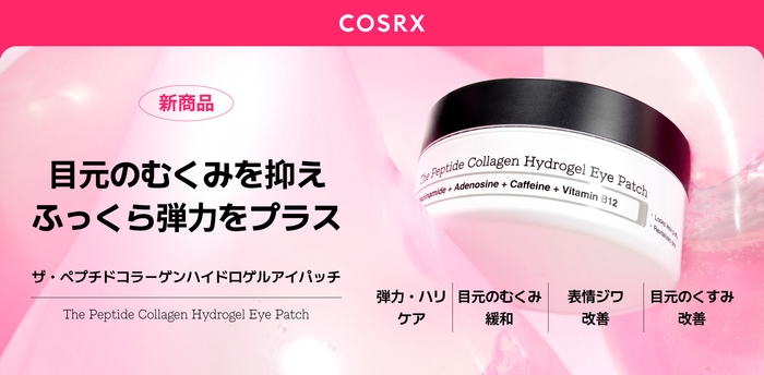 全世界に展開する韓国発のスキンケアブランド「COSRX」は肌に必要な成分を厳選し、敏感肌の方でも安心して使える製品開発を続ける信頼のブランドです。COSRXより「ボリュームと弾力ケア / 目元のむくみ軽減 / 表情ジワの改善 / 目元の明るさアップ」に効果的な新商品「RXザ・ペプチドコラーゲンハイドロゲルアイパッチ」を発売いたしました。冬の乾燥によるエイジングサインが気になる方におすすめの新商品です。