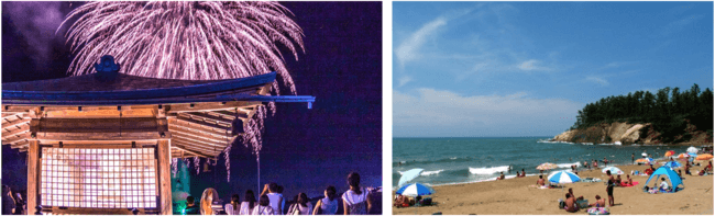 <写真③:石川県 片山津温泉納涼花火まつり> <写真④:石川県 片野海水浴場>