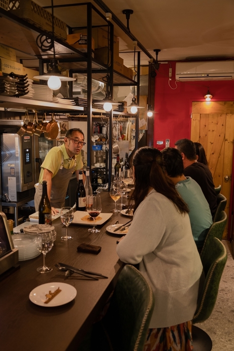 カウンター7席のみの小さな空間だからこそ、シェフが一皿ごとに素材や部位の特性を直接解説。