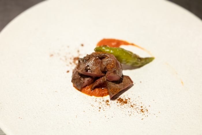 さらに、厚さや温度を変えることで、同じ素材でも別の味わいに。低温調理・炭火焼き・煮込みなど多様な技法を駆使し、「一頭の豚から生まれる多彩な世界」をコースで表現しています。