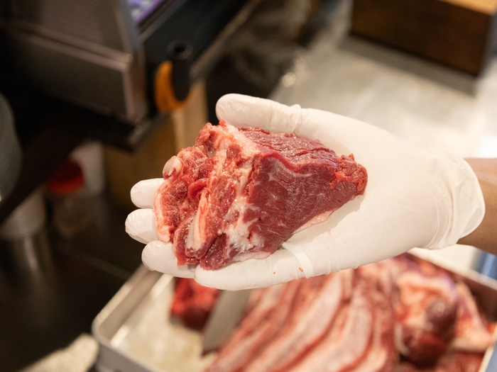 当店は一頭買いを続けることで、一般には流通しにくい希少豚を扱ってきました。今帰仁アグー、満州豚、マンガリッツァ豚、福留小牧場のサドルバック、そしてイベリコ豚レアルベジョータなどです。品種が変われば脂の香りも甘みも異なり、肩ロース・豚トロ・スネ肉といった部位でもまるで違う表情を見せます。