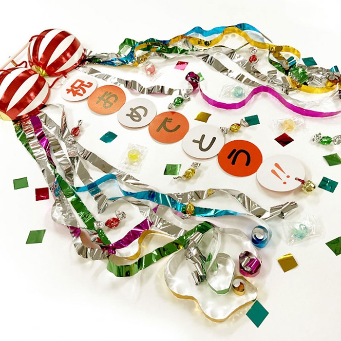 卒業式・卒園式の後の謝恩会やお別れ会は、楽しいパーティーで盛り上がりたい!キラキラチョコやキャンディのお菓子が飛び出す「おかしなくす玉」や、七色に光るキュートな星形キャンディ「トゥインクルキャンディW」は、盛り上げアイテムにピッタリです。