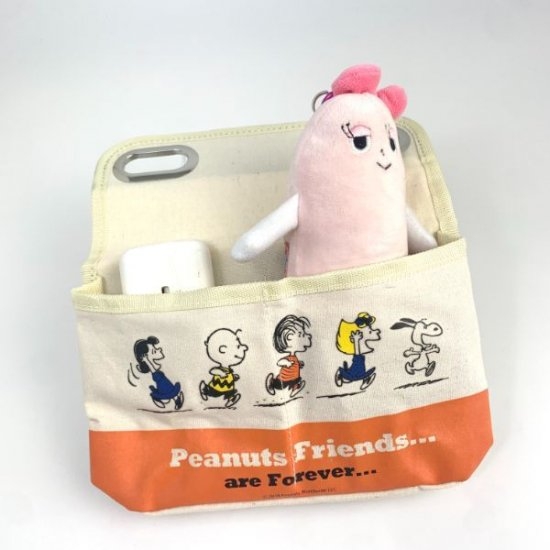 同じくスヌーピー&フレンズデザインのシートバックポケットも揃えれば、可愛い&便利です☆こちらは後部座席を快適にするアイテム。ヘッドレストポールに取り付ける収納ポケットなんです!