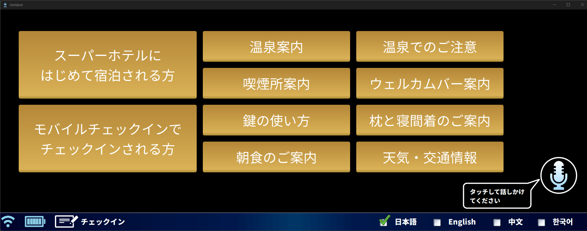 ※3:『ClerkBot』以外でも、同ホテルフロント設置の「『モバイルチェックインシステム』専用機」からチェックインが可能。