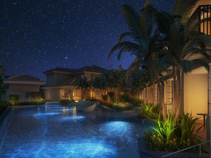 大人が優雅に過ごせるリゾート感溢れるプールとプールサイドにはBARを完備。