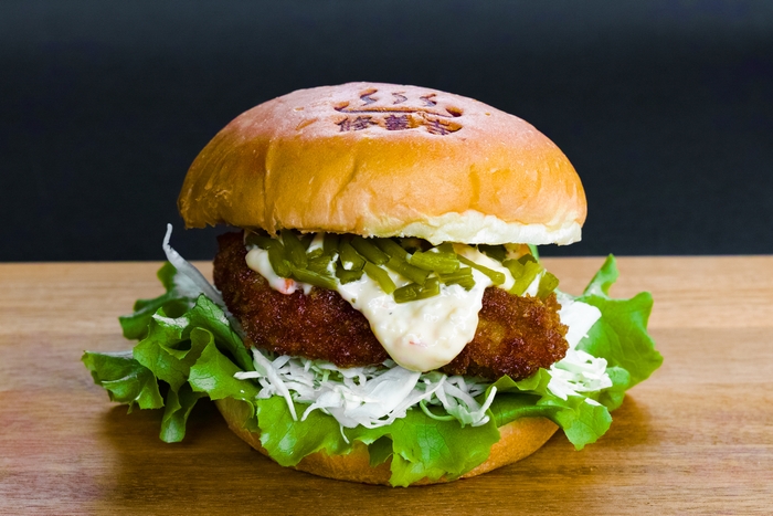 「清流の女王」と呼ばれる高級魚を贅沢に使ったカツバーガー。