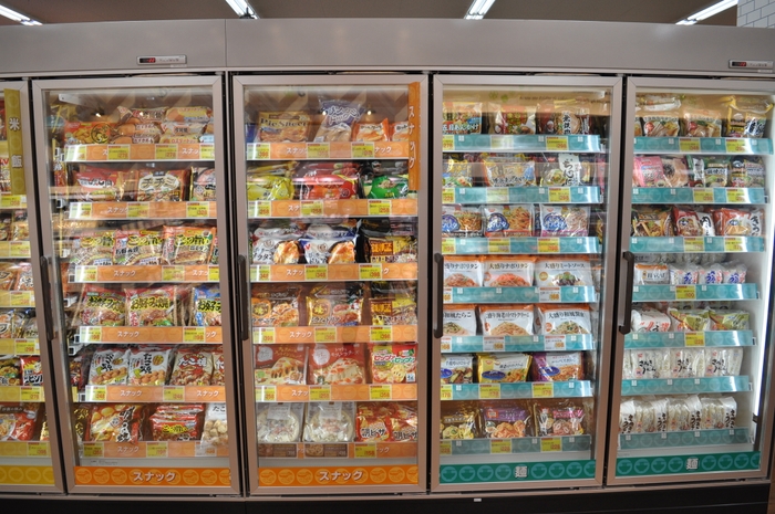 ・便利な冷凍食品コーナーには、リーチインケースを導入し、品ぞろえの拡充と商品を手に取りやすい売り場を実現