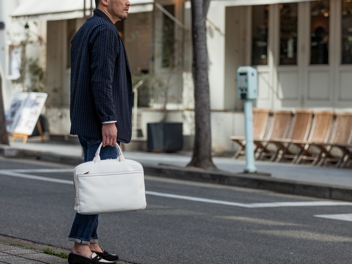 ”JETTER”シリーズは上質なホワイトレザーのみで展開するCREEZANのフラッグシップシリーズ。”Deep White"を追求したイタリア産の上質なシュリンクレザーと高級感のあるメタルパーツが個性を際立たせます。ソフトな風合いが特徴のほどよく肉厚なシュリンクレザーに日本の職人の技術を注いで作られた高品質の鞄には強撥水加工が施してあり、雨や汚れにも強く丈夫な自慢の一品となっております。