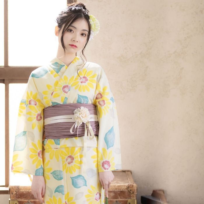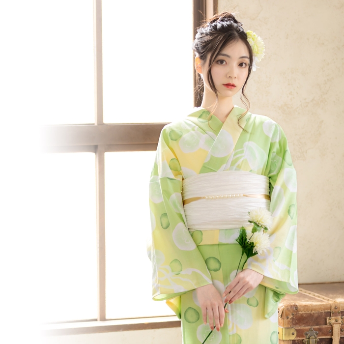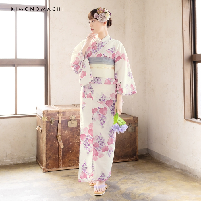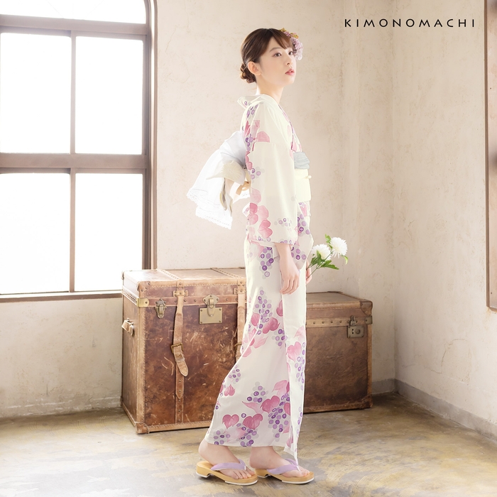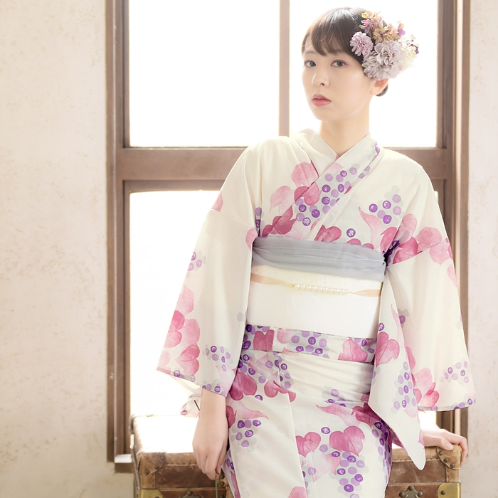 今年の新作浴衣のテーマは「透明感」です。淡いぼかし色やアイボリー、オフホワイトといった涼やかな地色を採用し、清楚な女性らしさを表現しています。