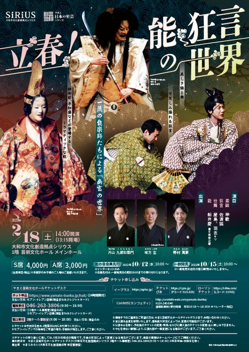 やまと芸術文化ホールで初の能楽・狂言公演『立春!能・狂言の世界』開催決定 出演に片山九郎右衛門・味方 玄・野村萬斎ほか カンフェティでチケット発売