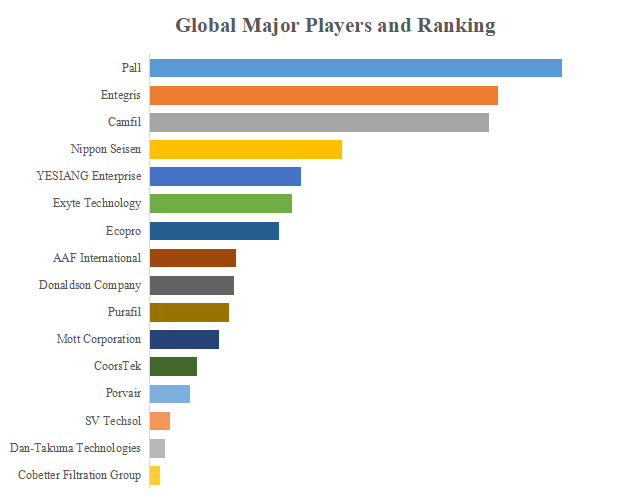 YHResearchのトップ企業研究センターによると、半導体ガスフィルターの世界的な主要製造業者には、Pall、Entegris、Camfil、Nippon Seisen、YESIANG Enterprise、Exyte Technology、Ecopro、AAF International、Donaldson Company、Purafilなどが含まれている。2022年、世界のトップ5企業は売上の観点から約61.0%の市場シェアを持っていた。