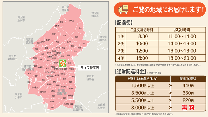 ライフネットスーパーのページをご覧いただき、お届け先が配達エリア内であれば、ご登録完了後すぐにご注文いただけます。