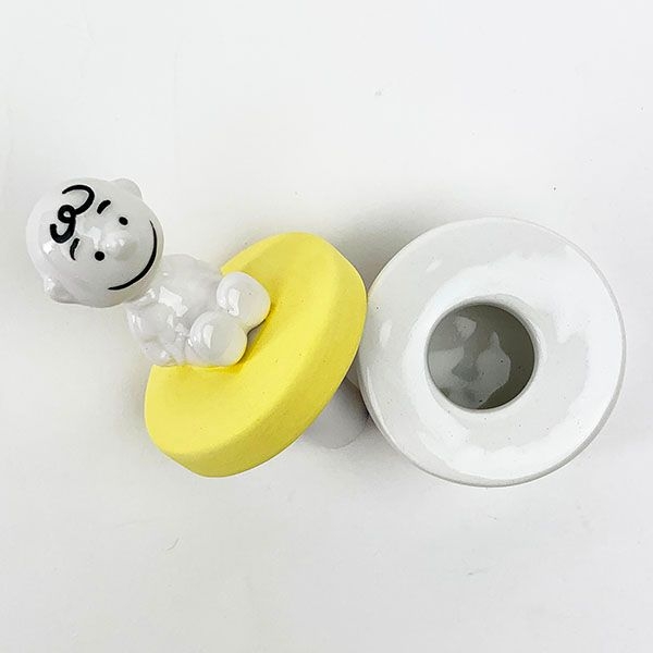 小物入れのような見た目がかわいらしい♡イメージカラーのイエローのフタにチャーリーブラウンのマスコットがついたこちらもポットタイプのディフューザーです。
