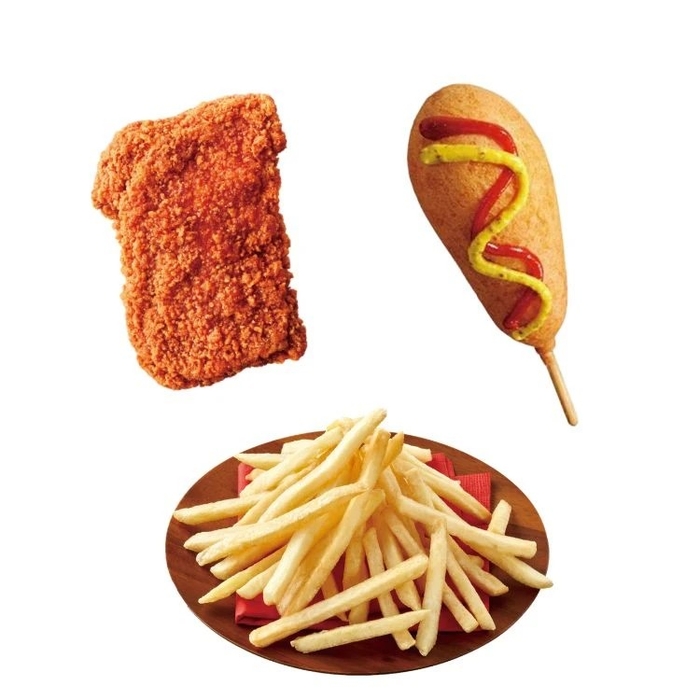 ●規格:ビッグアメリカンドッグ5本入り1袋×1、シューストリングポテト1袋×2、ジューシーチキン辛口1袋×2
