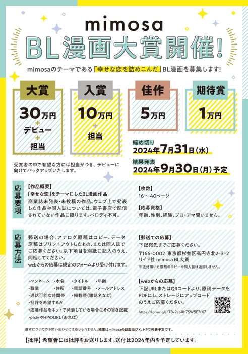 〒166-0002 東京都杉並区高円寺北2-3-2 リイド社 mimosa BL大賞