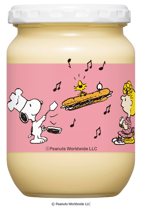 食卓に置くと見た目にも楽しい「スヌーピー」をはじめとする「ピーナッツ」のキャラクターをデザインした、瓶入りの「キユーピー マヨネーズ」です。