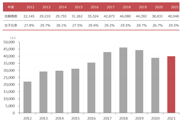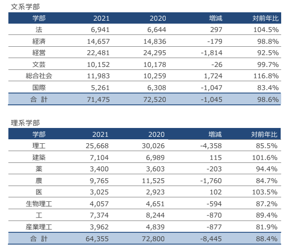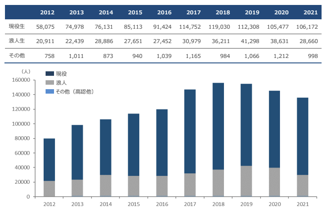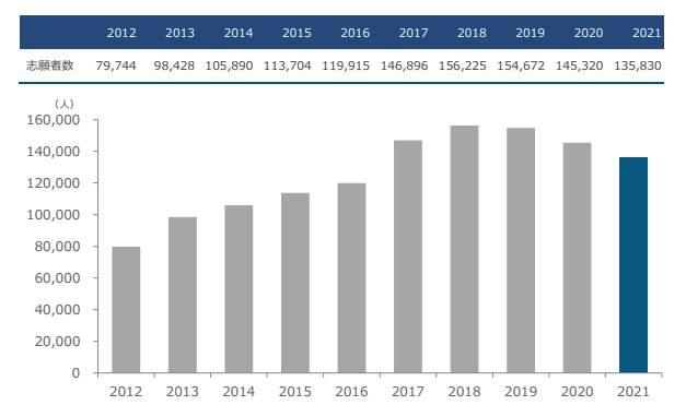 一般入試志願者数確定 135,830人 3年連続の減少も、現役生の志願者は昨年比100.7%とほぼ横ばい