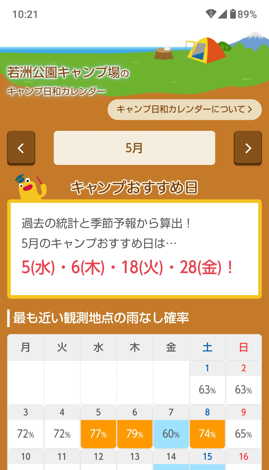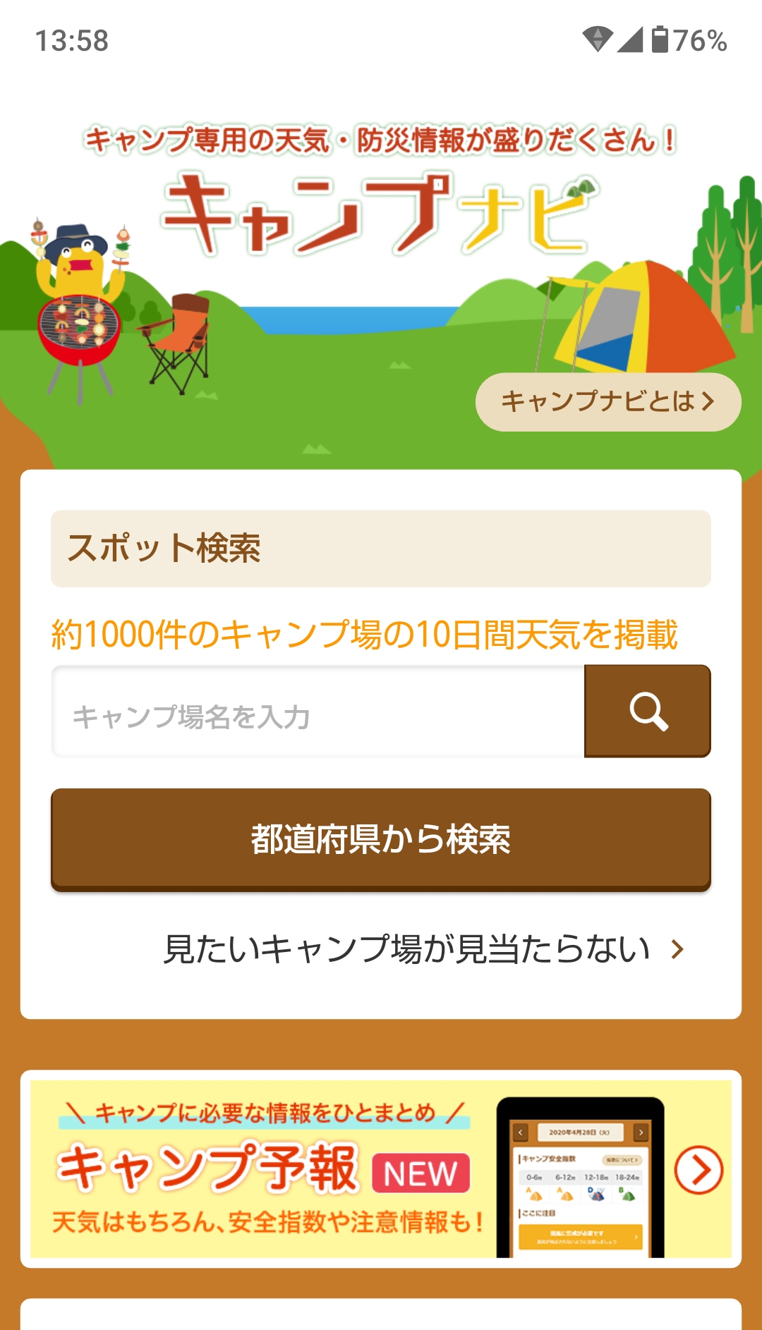 URL : https://s.n-kishou.co.jp/w/charge/camp/camp_top.html