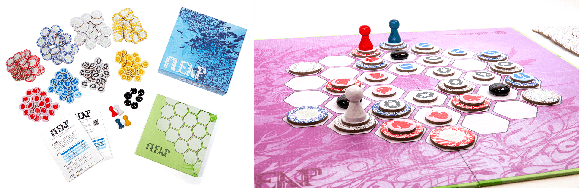 今回の「いちかわテーブルゲームマルシェ」では、秋発売予定の新作「fLEAP」を先行して体験ご購入いただけます。