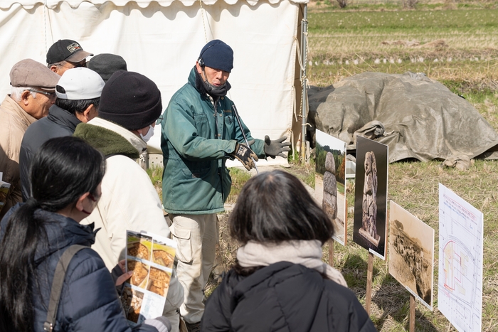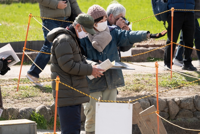 これらの成果を受け、3月2日(土)に現地見学会を開催いたしました。当日は晴天に恵まれたものの、時折小雪が舞うなかで、747名の方々にお越しいただきました。当日の現地見学会資料は以下のとおりです。