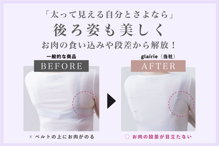 glairieでは、40代以降の女性特有の体型変化や肌の敏感さに対応するため、細部まで独自設計を施しています。