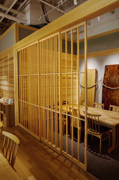 木造軸組伝統構法を用い、国産ヒノキで梁・柱を構成した2畳の木造空間モデル『KOMAKO』を併設します。組立・解体が可能で建具や屋根を追加で組み合わせ、木に包まれる空間を独自に造ることができます。