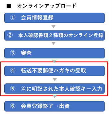 これまでのi-Bond会員登録の手続きは、本人確認書類の写しを2種類郵送いただくか、オンラインでアップロードいただき、当社社内での審査を経て、転送不要郵便ハガキをお客様に送付し、そのハガキに明記されている本人確認キーをマイページ上で入力いただくことで、会員登録が完了し、出資いただけるというものでした。お客様には本人確認書類2種類の提出、また転送不要郵便ハガキの受領及び本人確認キーの入力など、会員登録完了(出資可能になる)まで、数日から数週間お待たせしてしまう状況でした。