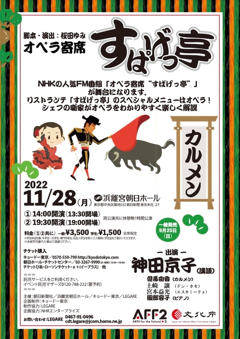 NHKの人気FM番組「オペラ寄席“すぱげっ亭”」 が舞台に! 『オペラ寄席 「すぱげっ亭」 <カルメン>』チケット発売!追加出演者決定!