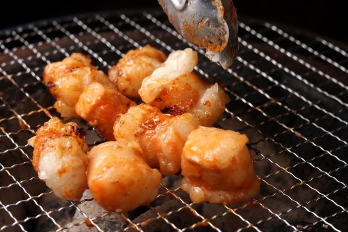 七輪で食べる絶品ぷりぷりホルモンはやみつき必至!コラーゲンたっぷりで女性からも人気です