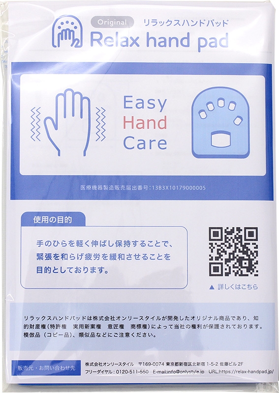 株式会社オンリースタイル(本社:東京都中野区)は、手のひらを軽く伸ばし保持することで、緊張を和らげ疲労を緩和させることを目的とした一般医療機器「リラックス ハンド パッド」にSサイズを追加発売いたしました。