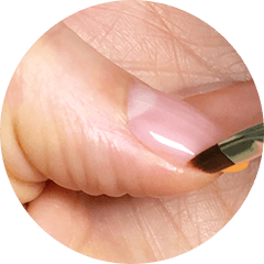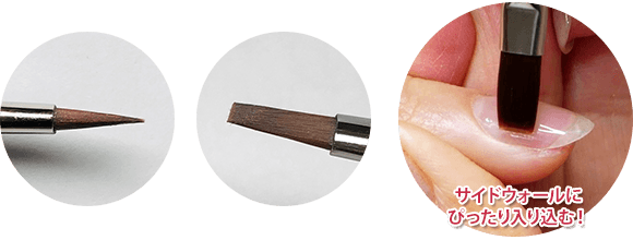 <OMD>ジェルブラシは、穂先が薄くキューティクル際まで攻めることができます!