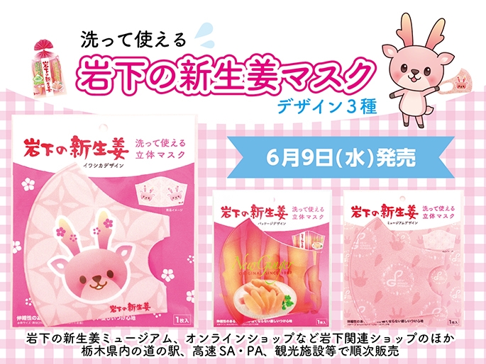 岩下食品株式会社(本社:栃木県栃木市、代表取締役社長:岩下 和了)は、岩下の新生姜や岩下の新生姜ミュージアムをモチーフとしたデザインマスク『岩下の新生姜マスク』を、岩下の新生姜ミュージアムショップ(栃木、秋葉原)、岩下の新生姜オンラインショップで2021年6月9日(水)から販売いたします。また、栃木県内の道の駅、高速SA・PA、観光施設等でも順次販売されます。