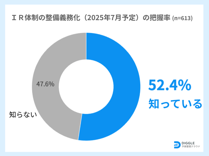 ・東京証券取引所による「IR体制の整備義務化(2025年7月予定)」 の把握率は52.4%と約半数のみ