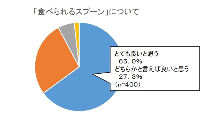 「食べるスプーン」のコンセプトにして、お客さまアンケートでは、92.3%の方に、「良い」「どちらかと言えば良い」とご評価いただくことができました。
