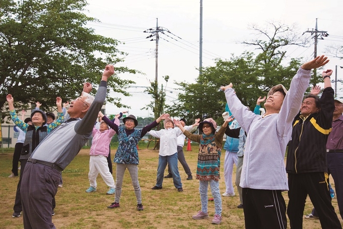ラジオ体操は、無理のない全身の筋肉や関節を動かすような構成で健康効果があるほか、体操をする場がコミュニケーションの場になる効果も期待されています。