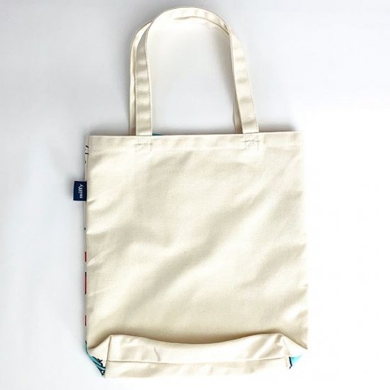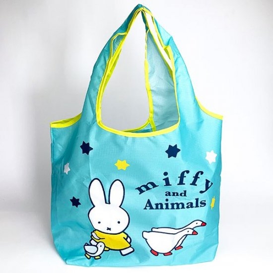 こちらは、爽やかなブルー地のエコバッグ。ミッフィーがアヒルとお散歩中の、ほっこりデザインです。