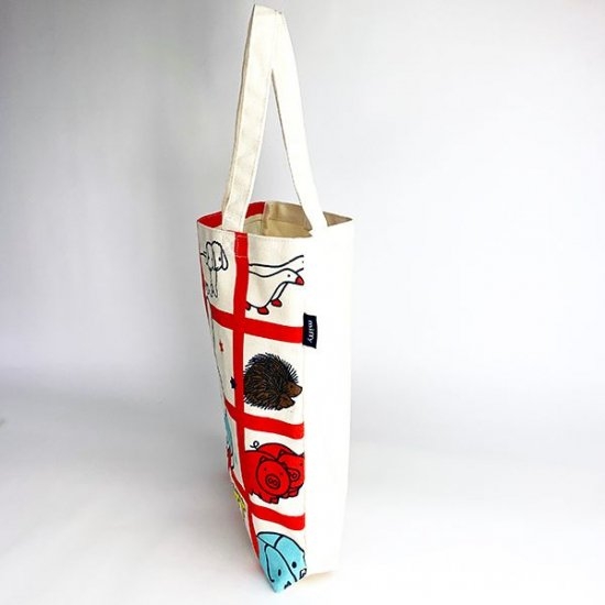 縦長シルエットでフラットなバッグは、お出かけ用にもピッタリなかわいさです。シンプルな作りなので、エコバッグとしても重宝しますよ♪